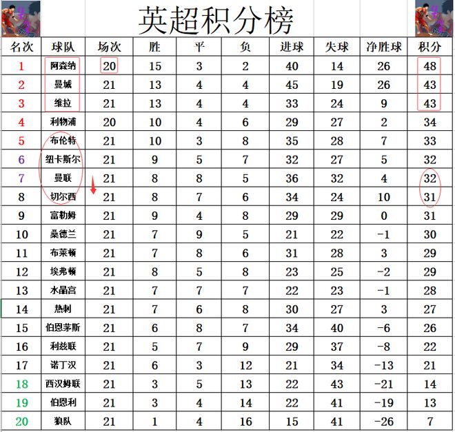 英超最新积分战报 阿森纳开心!切尔西输球 曼城维拉曼联平局丢分